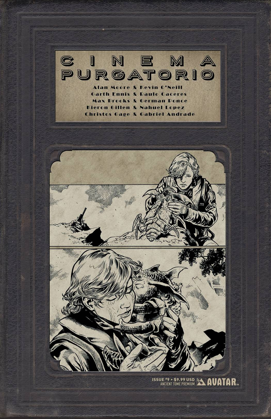 Who doesn't have fond memories from their youth of sneaking into the theater to see a movie they were too young to view? But in this world of Alan Moore's surreal cinema, viewing those features can be hazardous to your sanity. Hiding in the back of the dark theater you wait for the feature to start and the ushers to leave... but something is horribly wrong. The air is so dusty it's hard to breathe and you feel like something is watching you. This is where the madness begins. Join a master class of horror creators as they spin stories to terrify and delight. Now showing: Cinema Purgatorio by Alan Moore and Kevin O'Neill, A More Perfect Union by Max Brooks and German Ponce, Code Pru by Garth Ennis and Raulo Caceres, Modded by Kieron Gillen and Nahuel Lopez, and The Vast by Christos Gage and Gabriel Andrade. Each story has its own cover by the series artist and there is also an Ancient Tome Premium edition limited to 1000 copies.